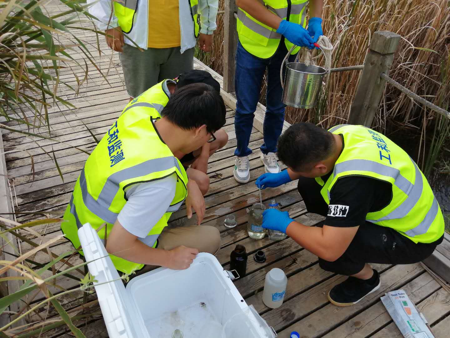 本次演練分為三個部分:第一部分是理論解析。由方咸勇組長解讀《聲環境質量標準》GB3096-2008以及各種類型噪聲的監測方法,同時分享了自己在噪聲采樣中的一些經驗和注意事項。由陶四正組長解讀《環境空氣質量標準》GB3095-2012以及有組織、無組織廢氣監測技術導則,重點強調技術文件上面要求現場采樣的規范性。由丁雷正組長解讀《地表水環境質量標準》GB3838-2002以及地下水、廢水監測技術規范,對水質保存方法、現場添加固定劑進行了詳細解析。