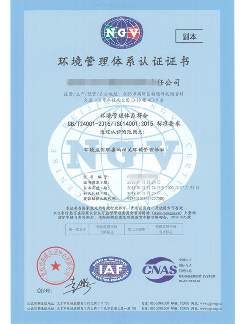環境管理體系認證證書(副本)
