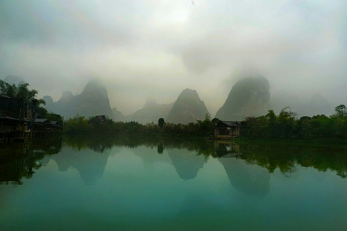 天空有些陰,不時還會飄起一些細雨,河面上騰起一些云霧,別有一番韻味。