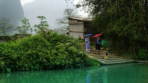 沿途的當地阿妹站在岸邊為我們演唱贊歌。